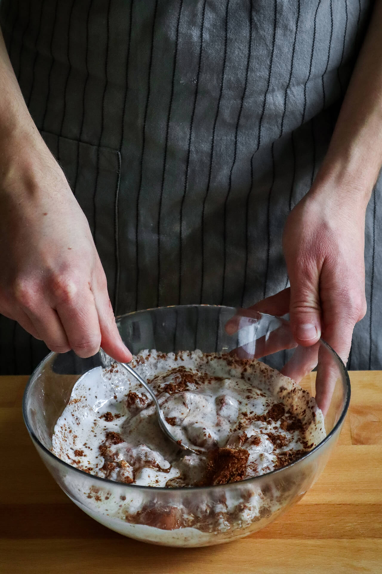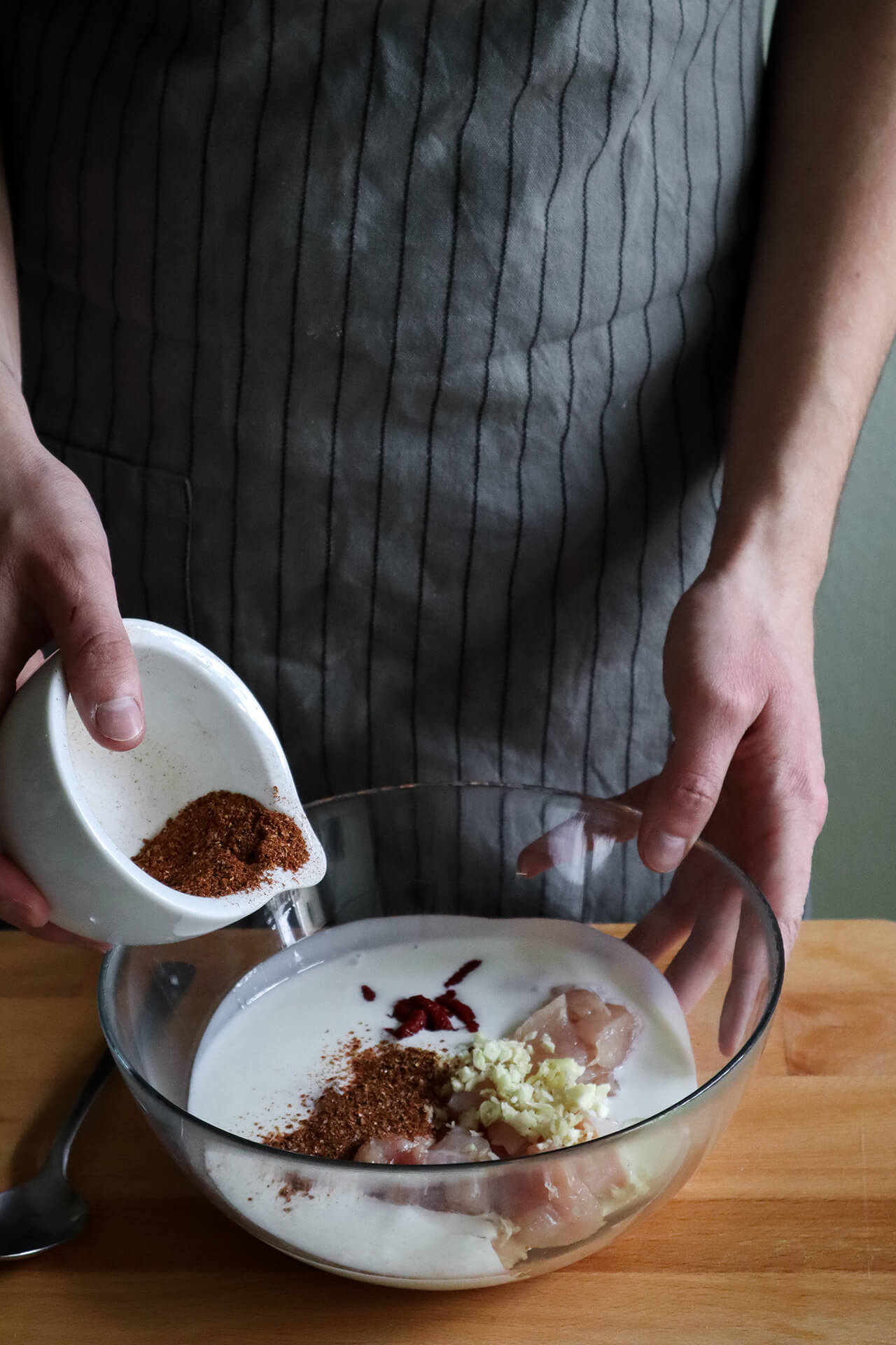 - Piletinu narežite na kockice i marinirajte dan prije (ili barem par sati prije) navedenim sastojcima.