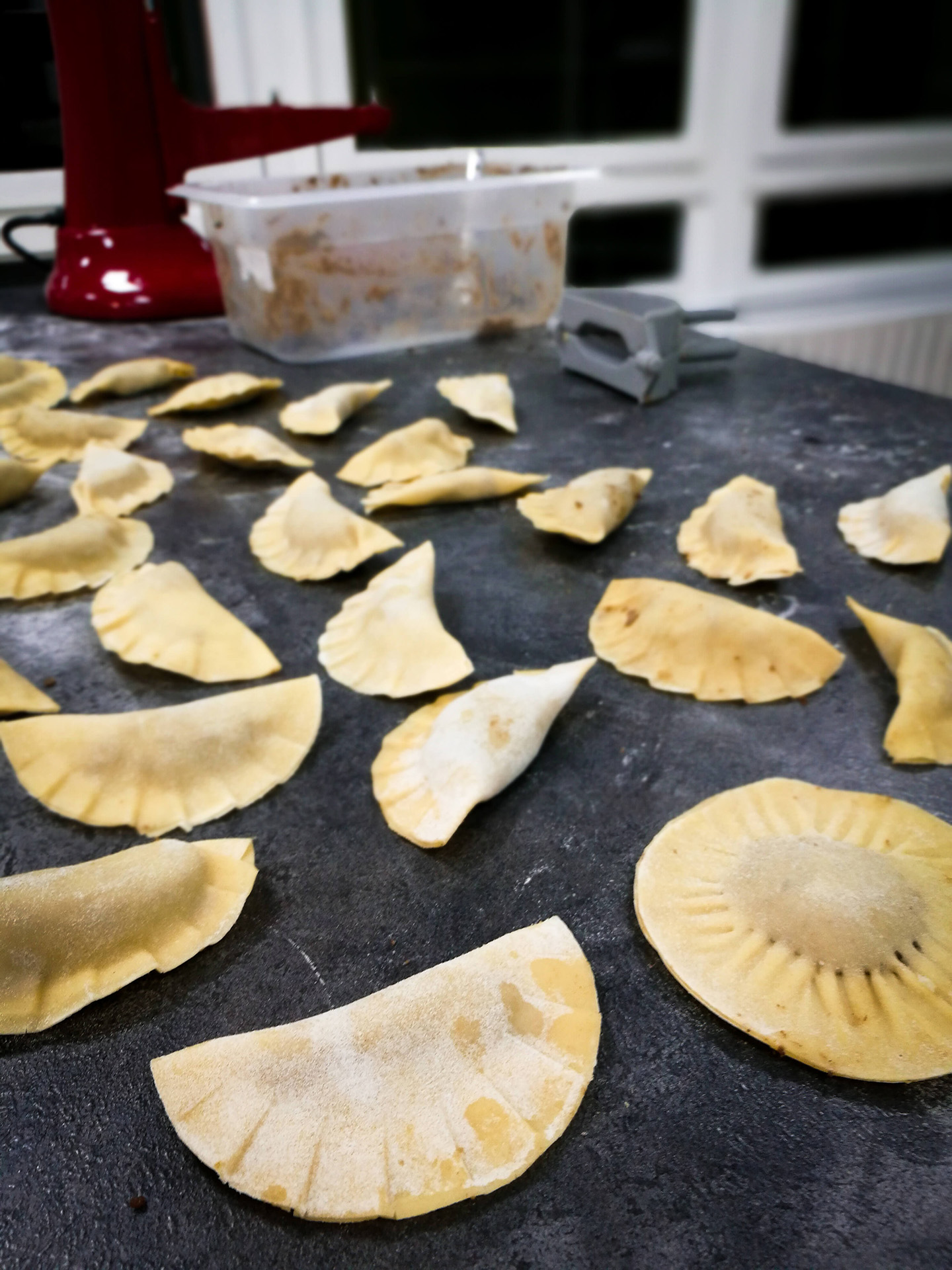 - Tako dobivenom smjesom napunite raviole u željenom obliku (bilo metodom preklapanja, bilo izradom pomoću alata za raviole) te ih prokuhajte par minuta u slanoj ključaloj vodi.