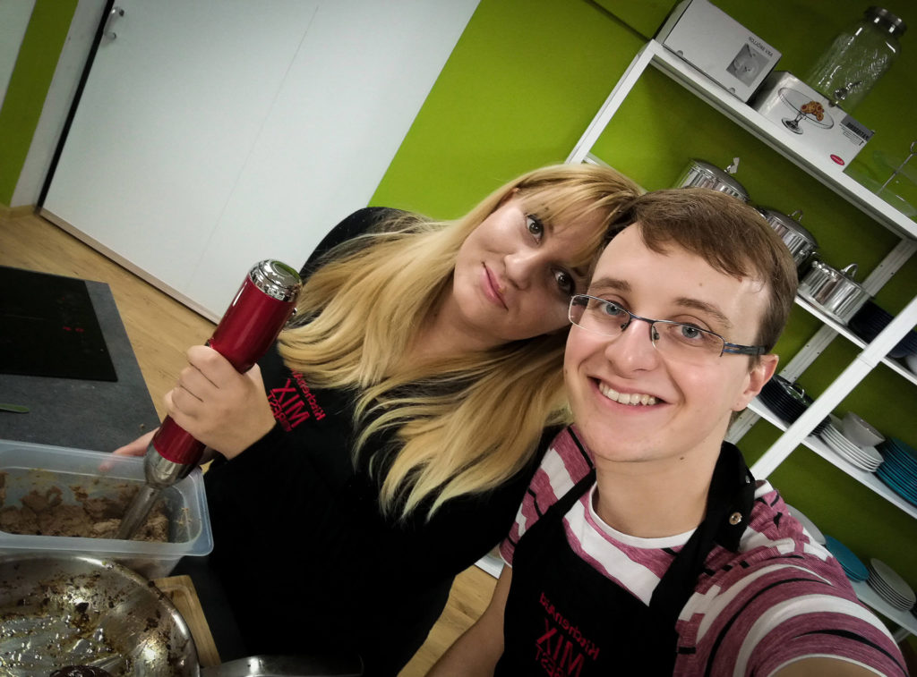 Nas je zapala domaća tjestenina. Dugo smo se premišljali što ćemo raditi, a na kraju je ideja došla sama od sebe. Kako nismo htjeli biti dosadnjikavi s punjenjem od sira i začinskog bilja, odlučili smo da naši ravioli budu punjeni telećom jetrom! Sweety je dala jako dobru ideju da ih poslužimo u juhi, a ja sam se sjetio kako bi ta juha mogla biti od korjenastog povrća i telećih kosti. Iako nas je bilo strah kako će sve to ispasti jer nikada to prije nismo radili, a i treba paziti na puno stvari (pogotovo da kosti ne zagore u pećnici!), na kraju je sve ispalo odlično.