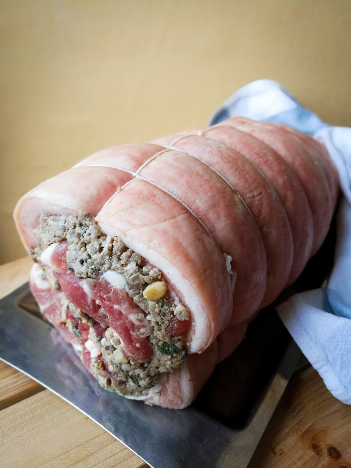 Čitajući što sve Talijani jedu, u oko mi je upala Porchetta. Rolana, punjena svinjska potrbušina prava je poslastica kojom se časte u posebnim prigodama pa tako i za Božić. Podrijetlo ovog jela nije točno utvrđeno, ali većina izvora upućuje na središnju Italiju. Naravno od regije do regije ovisi čime se puni, a posebice se to ističke kod začina jer neki koriste sjemenke koromača i korijandera, dok su drugi bazirani na mediteranske zelene začine kao timijan, ružmarin i kadulju. Puno je recepata i verzija ovog jela, ali meni se svidjela ona Genera Contalda (poznatog talijanskog kuhara i suradnika Jamie Olivera na njegovom Foodtube kanalu). Ta razina jednostavnosti i opuštenosti pri kuhanju te ljubavi prema talijanskoj gastronomiji koju taj čovjek prezentira je naprosto nevjerojatna. Kamo li sreće, Genaro je upravo imao recept za porchettu, a ja sam ga malo modificirao po svome.