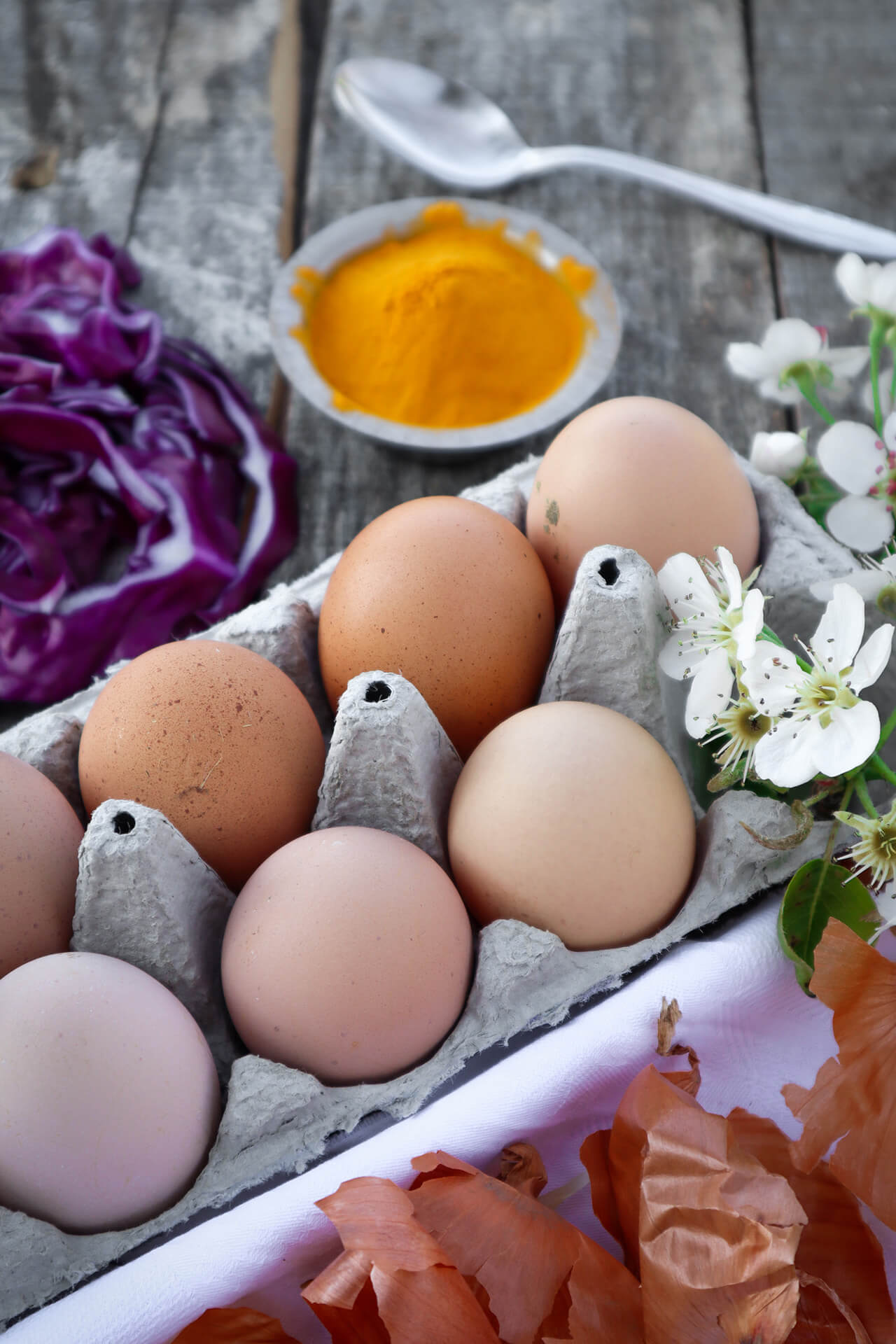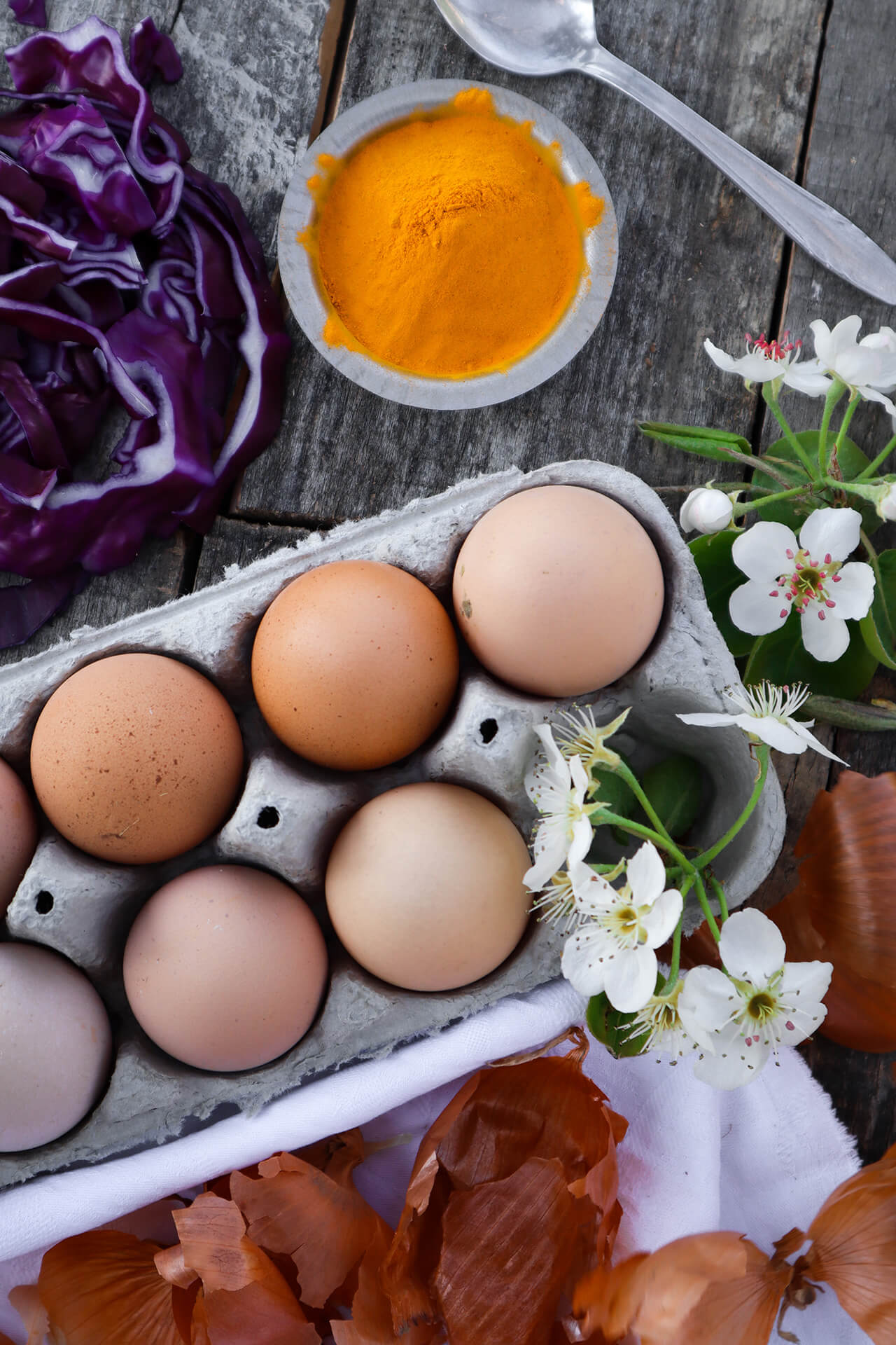 - žuta jaja najčešće dobivam korištenjem kurkume, ali moguće je i primjerice korom od jabuke ili mrkvom