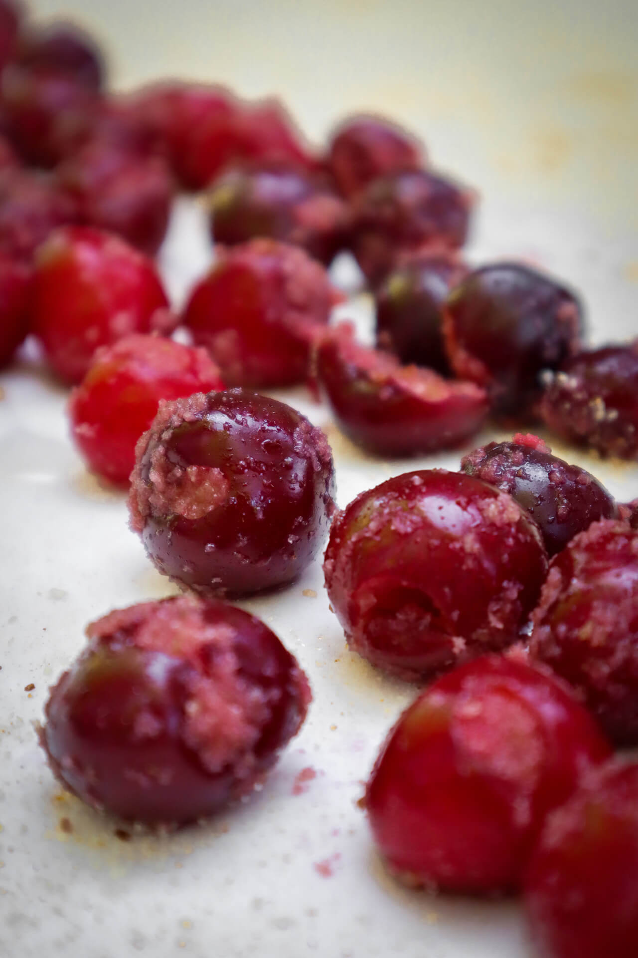 - Trešnje očistite od koštica i pomiješajte sa šećerom i vanilin šećerom. Po želji možete staviti i malo ruma ili drugog aromata.