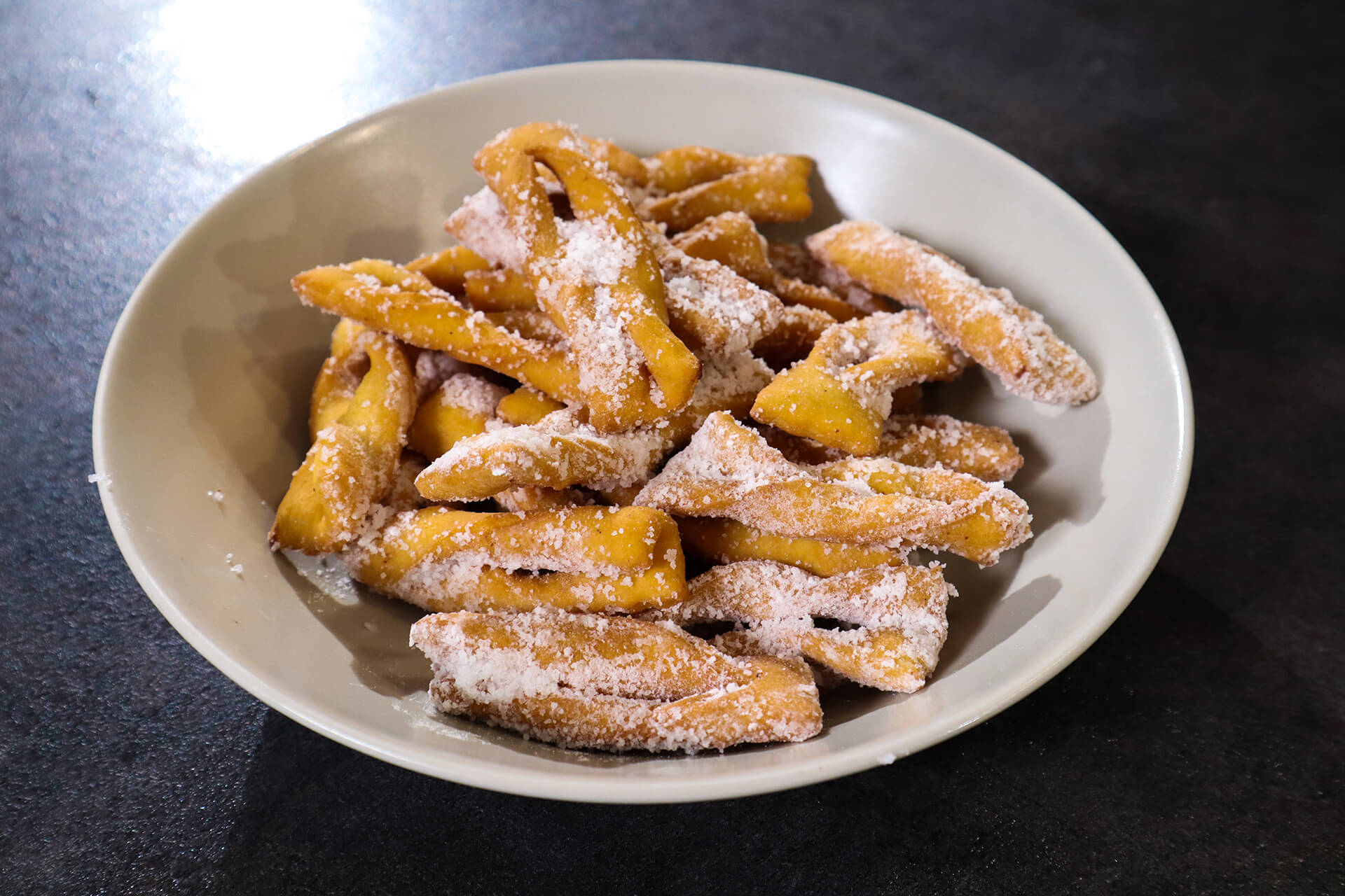 Kako postoji more (za mene neisprobanih) recepata, a ja imam samo jedan pokušaj da ovo izvedem dobro, nisam htio puno riskirati i obratio sam se Darku za pomoć oko tijesta. Darko je izvadio svoje stare zapisane recepte i pronašao onaj pravi. Na kraju sam napravio par izmjena jer nisam imao Marsala vino pa sam uzeo Muškat te sam dodao cimet i kakao u prahu (zato su malo tamniji, nisu zagorili), ali i nešto malo više brašna dok nisam dobio željenu tvrdoću tijesta jer ipak nije isto mijesiti ručno i na robot tako da vama možda i 125 g brašna bude dovoljno, procijenite sami.