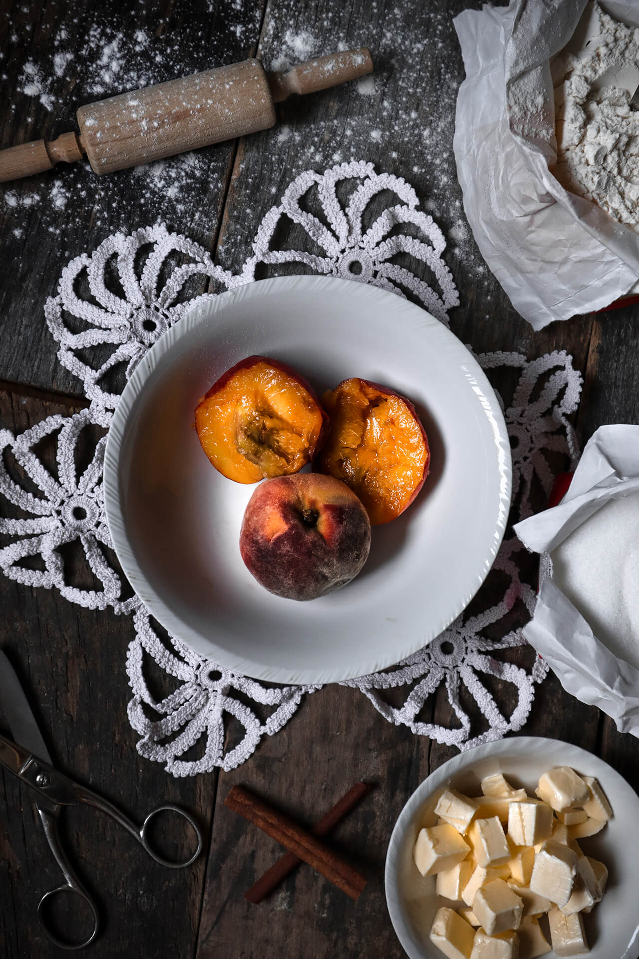 Kako sam odustao od Ratatouillea jer nije bilo patlidžana i bosiljka za kupiti te mi se ručak sveo na punjeni batak i zabatak te kuhani krumpir, odlučio sam napraviti još nešto. U frižideru sam imao dvije breskve koje je trebalo potrošiti, a Galette se činio kao idealan način za to.