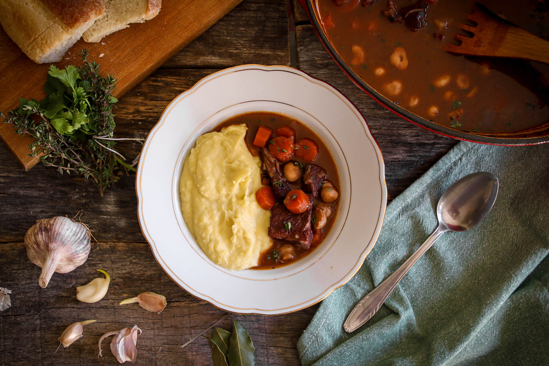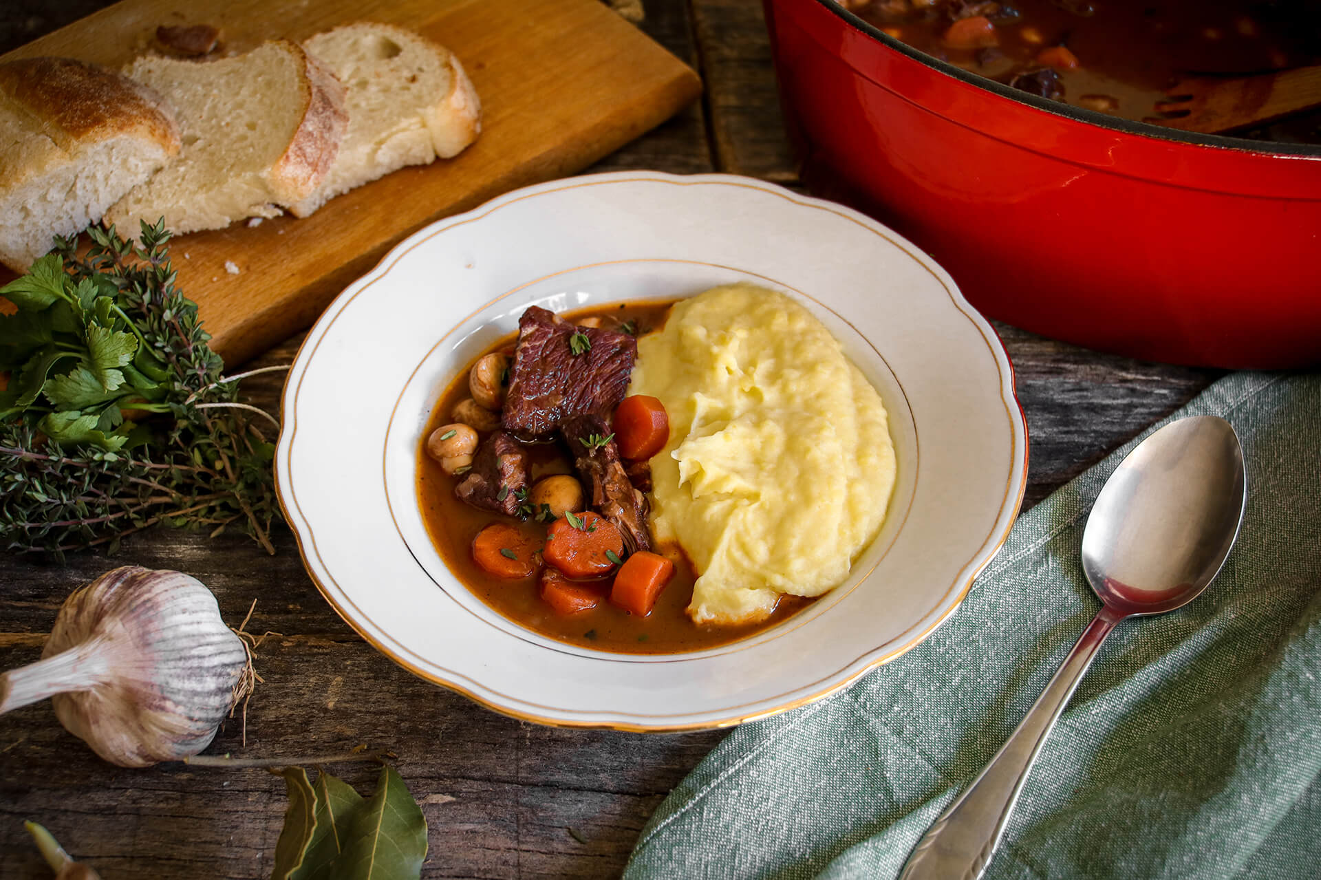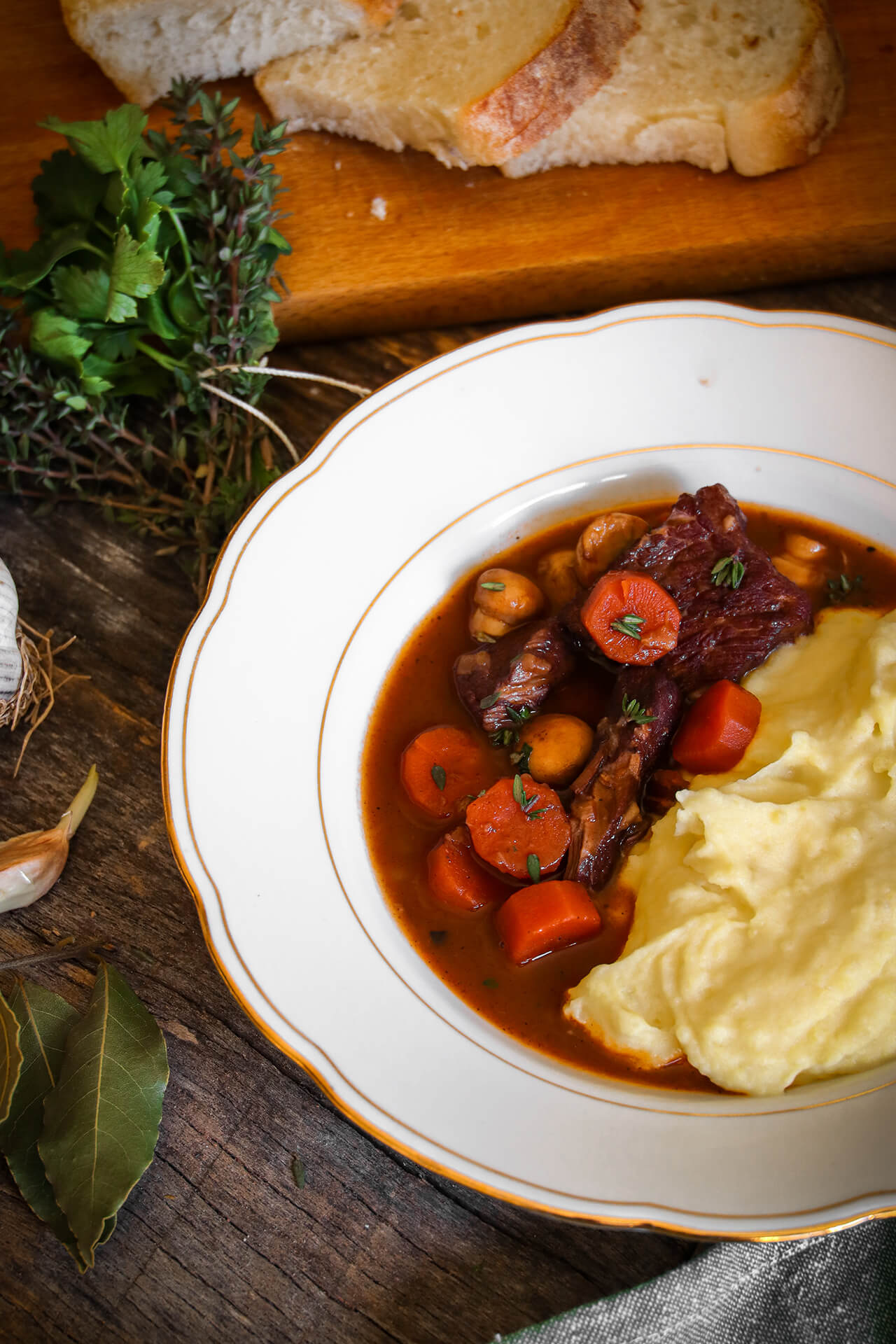 Osim dobrih sastojaka, bitno je imati i kvalitetan emajlirani dutch oven od lijevanog željeza. Prva faza ovog jela priprema se na štednjaku, a potom se sve dovršava polaganim kuhanjem na nižoj temperaturi u pećnici. Što se priloga tiče, tradicionalno se jede pire krumpir i kruh, ali mišljenja sam kako je dobra opcija i palenta. Obična, aromatizirana, zapečena… Taj izbor prepuštam vama.